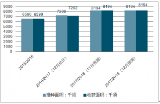 2017/18年度,中國大豆播種面積8194千公頃,比上年度增加986千公頃,增幅13.8%;大豆單產(chǎn)每公頃1817公斤,比上年度增加1.2%;大豆總產(chǎn)量1489萬噸,比上年度增加195萬噸,增幅15.1%;大豆進(jìn)口量9597萬噸,比上年度增加248萬噸,增幅2.7%;大豆總消費(fèi)量1.11億噸,比上年度增加245萬噸,增幅2.3%。