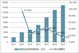 2011-2017年中國(guó)旅游業(yè)實(shí)際完成投資快速增長(zhǎng)(億元, %)