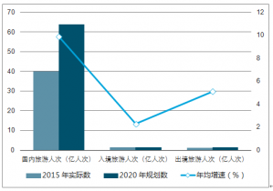 “十三五”期間國內(nèi)旅游人次、入境旅游人次、出境旅游人次及年增增速情況