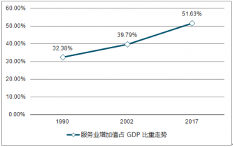 1990-2017年中國(guó)服務(wù)業(yè)增加值占 GDP 比重走勢(shì)