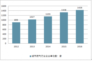 2012-2016年中國(guó)城市燃?xì)庑袠I(yè)企業(yè)單位數(shù)
