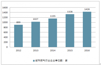 2012-2016年中國(guó)城市燃?xì)庑袠I(yè)企業(yè)單位數(shù)