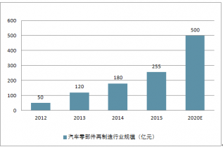 2012-2020年中國汽車零部件再制造行業(yè)規(guī)模(億元)