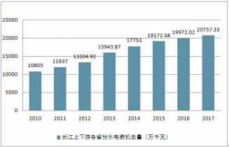 2010-2017 年長江上下游各省份水電裝機總量(萬千瓦)