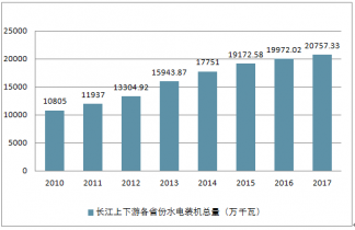 2010-2017 年長江上下游各省份水電裝機總量(萬千瓦)