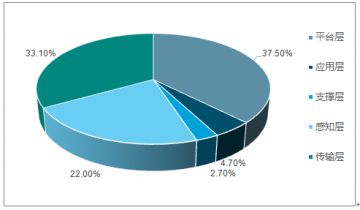移動互聯(lián)向萬物互聯(lián)的擴展浪潮,將使我國創(chuàng)造出相比于互聯(lián)網更大的市場空間和產業(yè)機遇。廣東省占比超過40%,其中支撐層、感知層、傳輸層、平臺層,以及應用層分別占比2.7%、22.0%、33.1%、37.5%和4.7%。而物聯(lián)網感知層、傳輸層參與廠商眾多,成為產業(yè)中競爭最為激烈的領域。