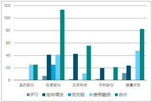 截至 2017 年生豬養(yǎng)殖上市公司上市之后融資規(guī)模(單位:億元)