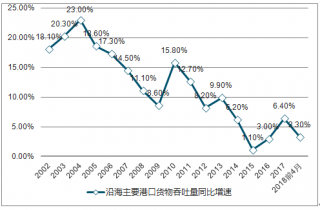 2002-2018.4月沿海主要港口貨物吞吐量同比增速