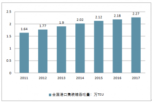 2011-2017年全國港口集裝箱吞吐量走勢(shì)