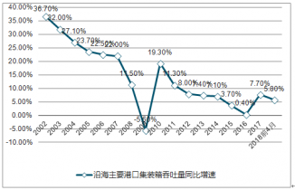 2002-2018.4月沿海主要港口集裝箱吞吐量同比增速