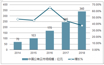 2014-2019年中國公有云市場規(guī)模及增長走勢