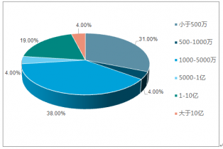 從2017年中國農(nóng)村電商融資金額占比來看:融資金額在1000萬元-5000萬元之間的占比最大,達38%;其次為融資小于500萬元,占比31%;值得提出的是融資金額在5000萬元以下的占七成。