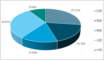 2017年中國農(nóng)村電商融資地域中,北部地區(qū)占比最大,達30.91%;其次,東部地區(qū)占比27.27%,位列第二。從城市分布來看,上海、北京、深圳等城市排在第.一梯隊;廣州、南京,武漢等城市排在第二梯隊;西安、重慶、成都等城市排在第三梯隊。