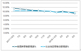 2017-2019年糧油、食品類零售額增速與社會(huì)消費(fèi)品零售總額增速比較