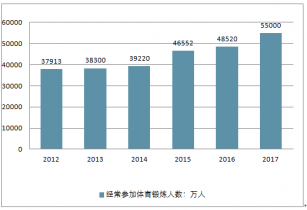 2012-2017年中國經(jīng)常參加體育鍛煉人數(shù)