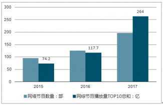 2015至2017年,網(wǎng)絡(luò)綜藝節(jié)目數(shù)量從96部上升到197部,數(shù)量上翻了一倍不止,各主流視頻網(wǎng)站均推出網(wǎng)絡(luò)綜藝節(jié)目,加入激烈的市場(chǎng)競(jìng)爭(zhēng)中;從網(wǎng)綜節(jié)目的播放量看,2015年播放量top10的網(wǎng)絡(luò)綜藝總播放量為74.2億次,2017年已上升至264億次,網(wǎng)絡(luò)綜藝節(jié)目對(duì)于觀眾的吸引力迅速提升,成為網(wǎng)絡(luò)視頻平臺(tái)的重要流量來源。