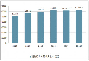 2019年上半年,我國(guó)建材行業(yè)規(guī)模以上企業(yè)實(shí)現(xiàn)主營(yíng)業(yè)務(wù)收入26262.4億元,同比增長(zhǎng)14.5%。預(yù)計(jì)2019年全年規(guī)模以上企業(yè)實(shí)現(xiàn)主營(yíng)業(yè)務(wù)收入62748.5億元。