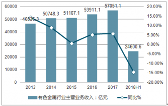2018上半年中國有色金屬行業(yè)主營業(yè)務收入達到24600.6億元,累計下降14.3%。