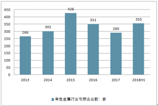 2013-2018上半年中國有色金屬行業(yè)虧損企業(yè)數(shù)走勢