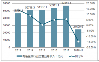 2018上半年中國有色金屬行業(yè)主營業(yè)務收入達到24600.6億元,累計下降14.3%。