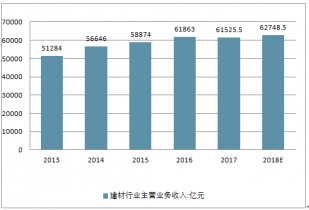 2019年上半年,我國(guó)建材行業(yè)規(guī)模以上企業(yè)實(shí)現(xiàn)主營(yíng)業(yè)務(wù)收入26262.4億元,同比增長(zhǎng)14.5%。預(yù)計(jì)2019年全年規(guī)模以上企業(yè)實(shí)現(xiàn)主營(yíng)業(yè)務(wù)收入62748.5億元。