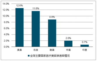 全球主要國家醫(yī)療美容滲透率情況