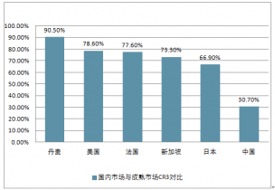 國(guó)內(nèi)市場(chǎng)與成熟市場(chǎng)CR3對(duì)比