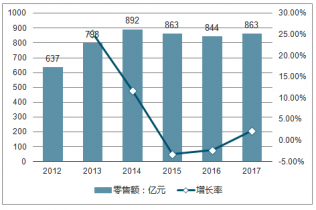 2012-2017年嬰幼兒配方奶粉市場(chǎng)零售額及增長(zhǎng)率走勢(shì)