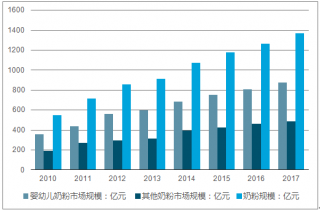 嬰幼兒奶粉市場(chǎng)規(guī)模從2013年的600億元增至2017年的877億元。
