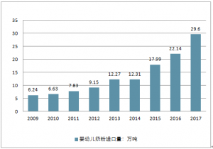 2009-2017年中國嬰幼兒奶粉行業(yè)進(jìn)口量走勢(shì)