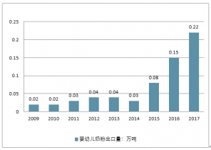 2009-2017年中國嬰幼兒奶粉行業(yè)出口量走勢