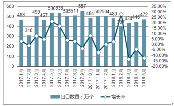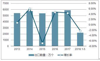 2018年1-5月中國出口微波爐2230萬個,同比下降2.2%;縱觀近五年中國微波爐出口數(shù)量情況,年均復合增長率為0.78%。