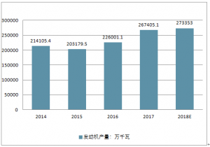 2014-2018年中國發(fā)動機(jī)產(chǎn)量走勢