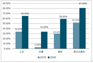 2030-2050年國(guó)外各部門(mén)電能替代占能源消費(fèi)比重預(yù)測(cè)