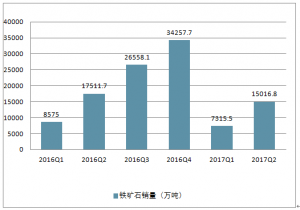 2016-2017年中國鐵礦石銷量走勢