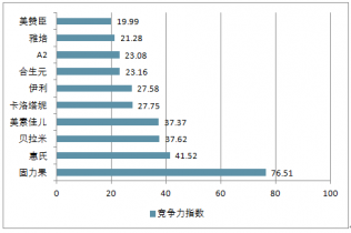 從線上品牌競爭力指數(shù)來看,競爭力前十的品牌分別是:固力果、惠氏、貝拉米、美素佳兒、卡洛塔妮、伊利、合生元、A2、雅培和美贊臣。其中,固力果以76.51的競爭力遙遙領(lǐng)先。