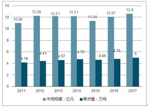 2011-2017年我國電子鋁箔需求量及需求規模變化趨勢