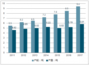 電子鋁箔是生產電極箔的重要原材料,與電極箔的類似,我國電極箔也存在嚴重的產能過剩。數據顯示,2017年我國電子鋁箔產能約9.4萬噸,比2016年的9.5萬噸增加了0.9萬噸;但電子鋁箔產量約5.81萬噸,同比2016年的5.19萬噸增長了11.95%。我國電子鋁箔產能利用率僅為61.81%。
