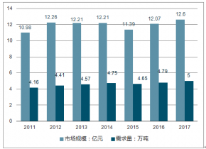 2011-2017年我國電子鋁箔需求量及需求規模變化趨勢