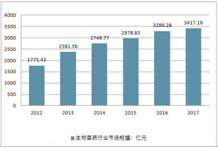 2017年生物醫(yī)藥行業(yè)市場規(guī)模為3417.19億元,較上年同比增長增速放緩。