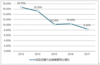 2013-2017年中國藥品流通行業(yè)銷售額同比增長走勢