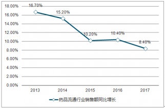 2013-2017年中國藥品流通行業(yè)銷售額同比增長走勢