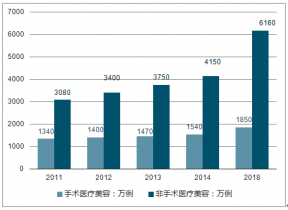 圖表:2014-2018年我國醫(yī)療美容行業(yè)市場規(guī)模