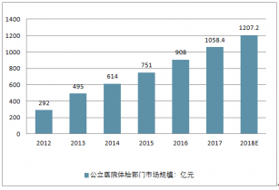 2012-2018年中國健康體檢行業公立醫院體檢部門市場規模走勢