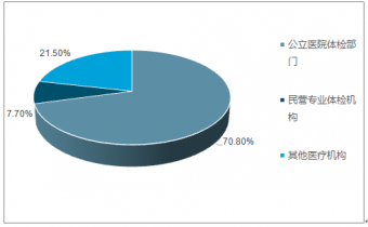 我國健康體檢服務行業公立醫院體檢部門市場份額占比70.8%,民營專業體檢機構市場份額占比7.7%。
