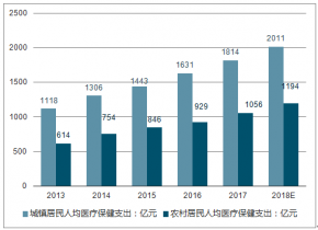 2013-2018年中國城鄉居民人均醫療保健支出對比走勢