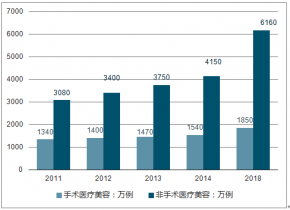 圖表 2011-2018年我國醫(yī)療美容機構(gòu)市場需求及增長情況
