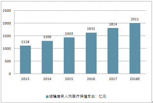 2013-2018年中國(guó)城鎮(zhèn)居民人均醫(yī)療保健支出走勢(shì)
