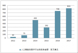 2012-2017年人工智能在醫(yī)療行業(yè)的投資金額(單位:百萬美元)
