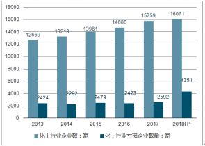 截至2018年上半年,化工行業(yè)企業(yè)共計23306個。其中,虧損企業(yè)達(dá)4036個,虧損總額為294.5億元。
